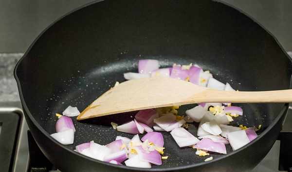 鍋中入油燒熱,下蒜末和洋蔥煸炒;