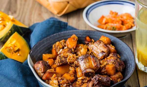 這道南瓜排骨燜飯是經典的粵式菜肴,清淡而不失美味,南瓜的香甜味與米飯結合,又有排骨鮮嫩的肉味,吃瞭還想繼續吃~