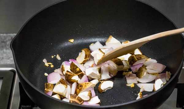 接著加入香菇翻炒;