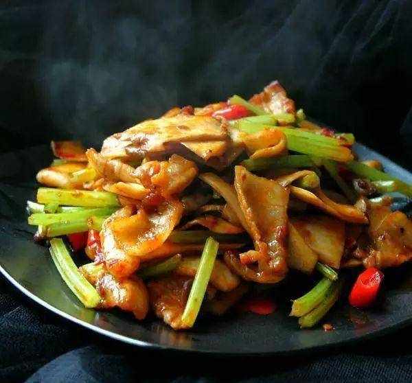配料:杏鮑菇250克,豬肉70克,芹菜100克,生薑2片,大蒜2瓣,小辣椒2個,豆瓣醬1湯匙,醬油2茶匙,白糖1茶匙;