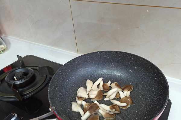 鍋裡下少許油,加入平菇翻炒,至變軟。