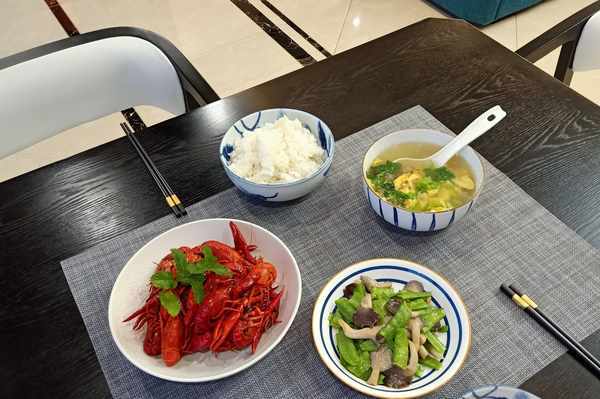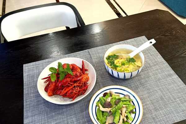 今天偷個懶,曬曬娘兒倆的懶人晚餐,隻有簡簡單單2個菜,麻辣小龍蝦、平菇炒荷蘭豆,再加1個快手湯,一共才3個,從進門到上桌,15分鐘搞定。