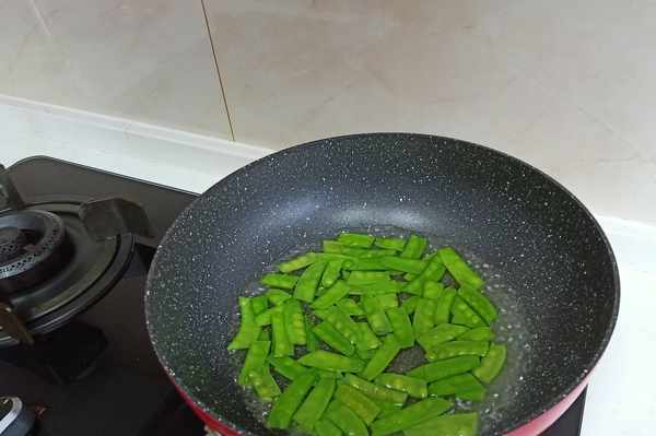 最後,加荷蘭豆,翻炒均勻即可。