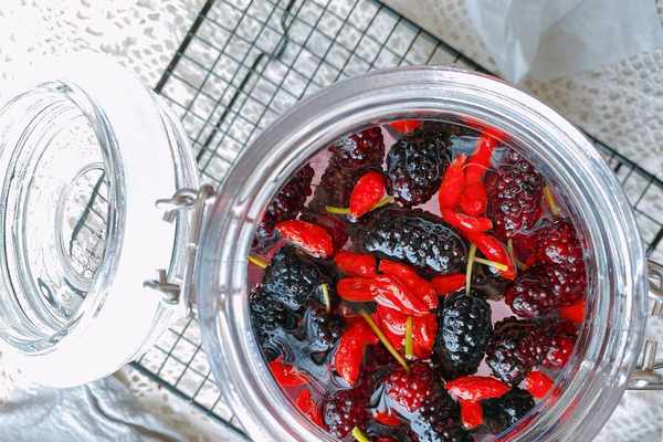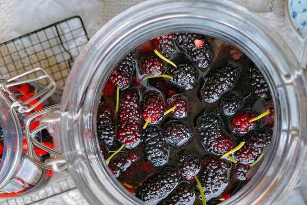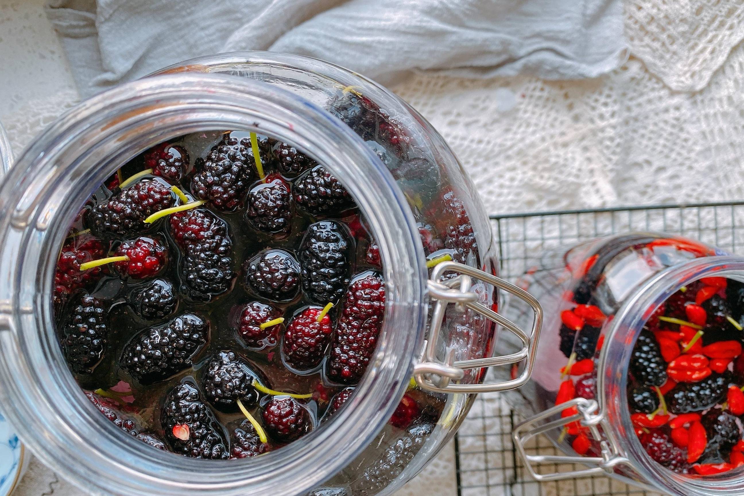 桑葚的做法有很多,可以直接吃,也可以做桑葚果醬、桑葚酒、桑葚果幹等等,因為桑葚鮮果上市的季節並不長,所以想要很長時間都能吃上桑葚,可以將它加工一下,桑葚果醬是很多朋友的選擇,但如果你喜歡喝酒,可以試試在傢泡點桑椹酒嘗嘗,不僅顏色漂亮口感好,營養價值還高;