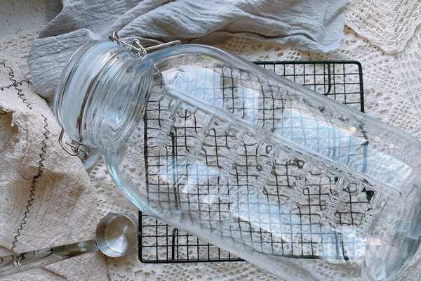 5、鋪好之後,加入準備好的白酒,白酒用的是糧食燒酒,清香型的小麥燒,這樣不會掩蓋掉桑葚果實的香味,白酒要沒過冰糖,一般到玻璃罐的8分滿就可以瞭;