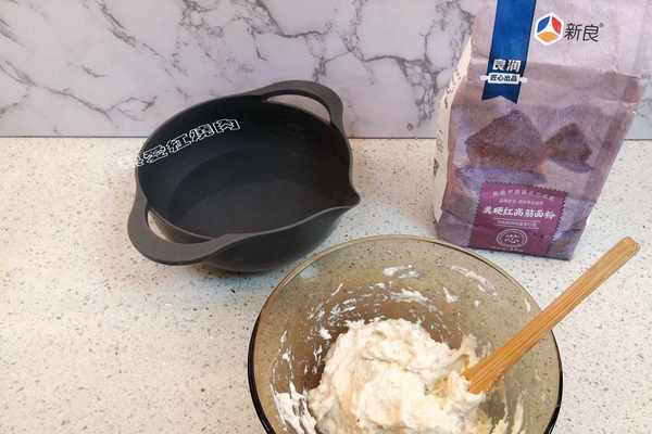 11小碗裡稱65克頂焙良品黑全麥粉再加入105克啤酒和3克鮮酵母、3克白糖攪成面糊備用。