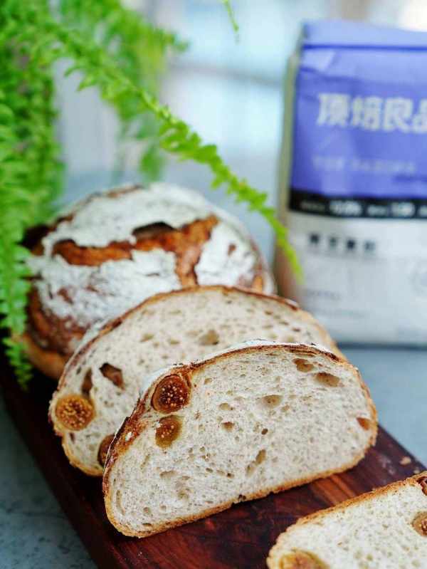 對瞭,面包裡還放瞭點整顆的酒漬無花果,增加瞭些甜味,口感也不錯,尤其嚼到無花果的籽兒時,咯吱吱的挺好吃的,我特意買的小顆粒的無花果幹,不用切開直接就可以放面團裡,效果還不錯哈。