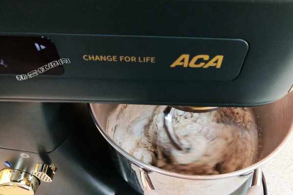 6用廚師機一檔先把所有食材充分混合均勻,再換4擋揉五分鐘,揉至面團不粘缸即可。