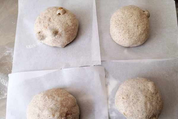 14松弛好的面團再次排氣滾圓放在油紙上開始二次發酵,這一步可以放烤箱裡選發酵功能30度發酵35分鐘,