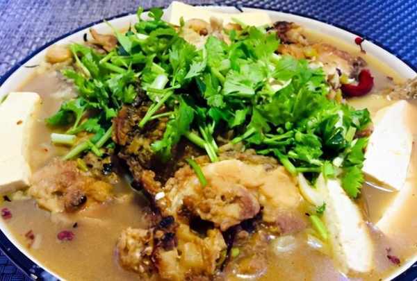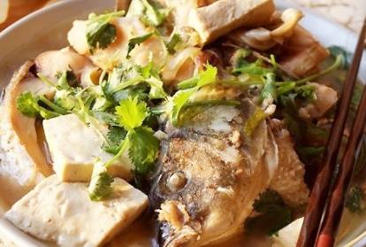 草魚燉豆腐的做法:備用食材:草魚1000克,豆腐500克,食鹽少許,蔥薑少許,花椒粒1把,八角1個,料酒1勺,香菜2根,胡麻油少許;
