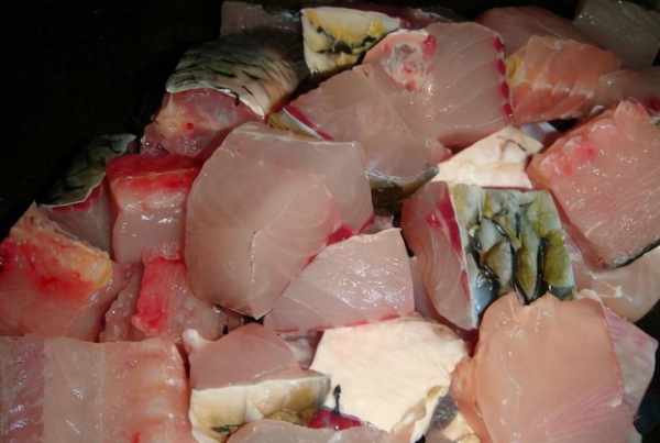 制作過程:第一步,新鮮草魚一條,將草魚宰殺,去頭尾,隻取魚身,頭尾可燉湯,將魚身剁成塊,沖洗幹凈血水,控幹後,加上點料酒和少許的食鹽;