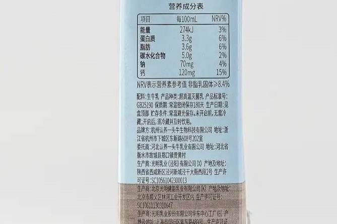 3.產品配料表中沒有添加生牛乳或生牛乳沒有排在配料表中的第一位。