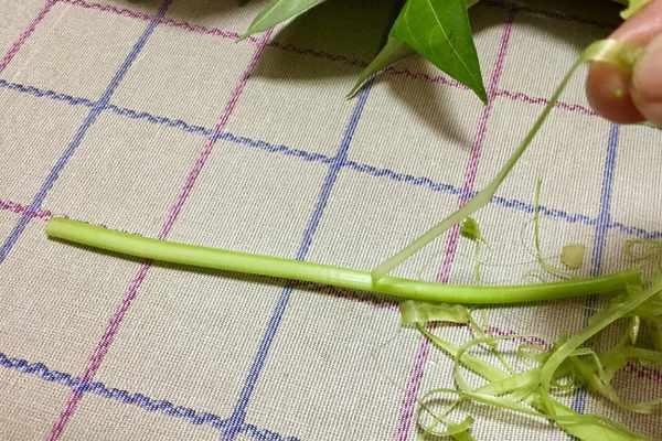 2.紅薯葉扒皮後用清水洗凈
