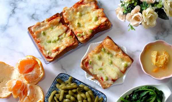 早餐八:小米藜麥紅薯粥、吐司雞肉披薩、鹽水毛豆、白灼菜心;給傢人們做一份吐司雞肉披薩,取三片吐司面包片,分別抹上番茄醬,鋪上切成小片的即食雞胸肉,撒上煮熟的毛豆,撒上馬蘇裡拉奶酪,烤箱220度,中層烘烤12分鐘,吐司雞肉披薩就做好瞭。做法夠簡單,孩子們又愛吃,這樣的早餐主食我也喜歡多做幾次。