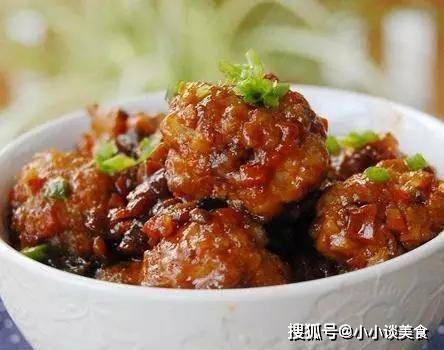 4.鍋內放油,放入蔥、薑、蒜爆香。加入醬汁拌勻;將燉好的丸子和湯倒入鍋中,大火收汁,邊不斷翻炒邊炒。把醬汁均勻地塗在肉丸上