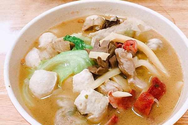 其做法,酸筍幹用清水浸泡6小時,其間最好換水。泡好的酸筍幹放入清水或洗米水中煮20分鐘,再換清水煮一次,最後把水倒掉。最後,把酸筍幹的水分擠幹備用。帶皮的雞胸肉洗凈,用刀連皮片成薄片。然後把酸筍幹和雞胸肉片同放入高湯中煮30分鐘。最後再加入芥菜莖滾一下,加鹽即可。