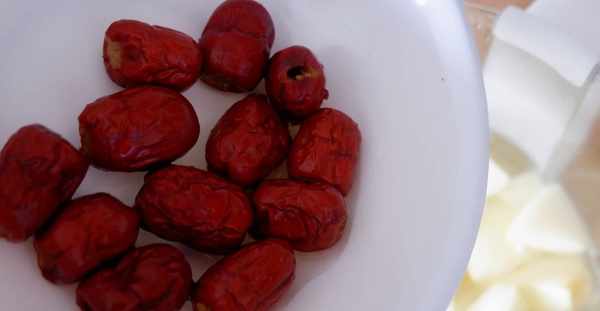 3、紅棗清洗幹凈。不過我們需要註意的是,棗皮容易滯留在腸道中而不易排出,因此吃棗時應吐棗皮。棗皮中含有豐富的營養成分,燉湯時應連皮一起烹調。過多食用人棗會引起胃酸過多和腹脹。