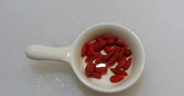 4、枸杞也用清水稍微地沖洗一下,將枸杞表面的浮塵都清洗掉,