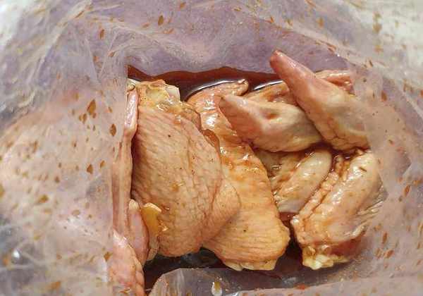 1、將雞翅洗幹凈,放進塑膠帶將所有的材料都加進去,綁起來搖均勻冰至冷藏最少半天!(中途可以再拿出來搖一搖,讓全部的雞翅都可以吃到鹵汁)※蒜頭用拍的拍扁即可※“我是早上買完菜回來就先用下去醃制,冰到晚上要煮飯的時候拿出來烤的”。