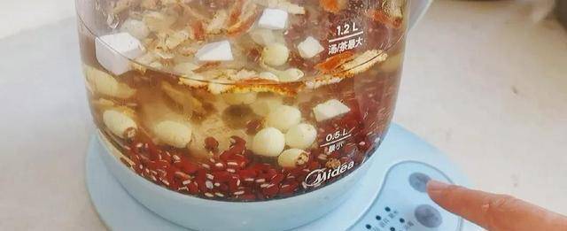 接下來把食材倒入養生壺中,加入約1000毫升的純凈水,大約煮上40分鐘就可以啦,