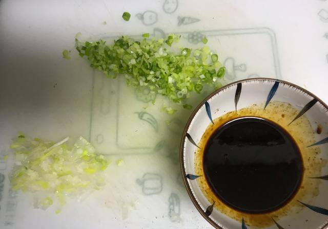 9、將其放涼後,放入剩下的蔥葉碎部分,如圖所示。