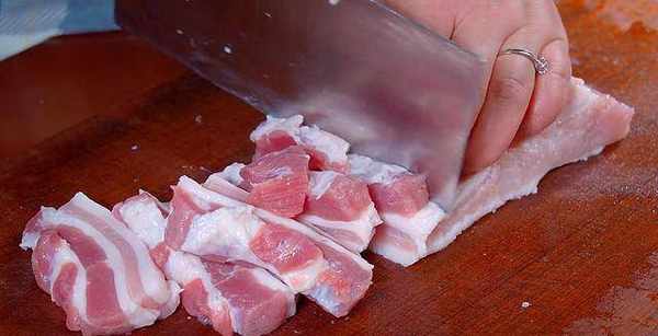 1.準備一塊五花肉,先把它切成厚片。肉的部位看個人喜好來定。