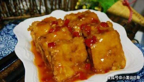 加入番茄醬炒5秒,然後將魚露灑在豆腐片上。