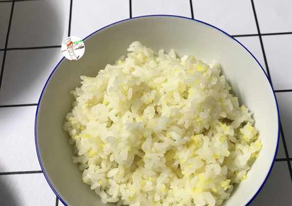 今天中午的主食,沒有其它選擇,依然用大米&小米,煮的雙米飯瞭,好吃營養且升糖指數低。