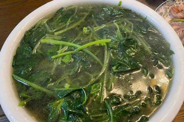 【菠菜湯】春天的菠菜最為鮮嫩,而且還有補鐵補血的作用,朋友做的這道菠菜素湯沒有什麼復雜的食材搭配和調料配比,但有一點需要註意,就是先將菠菜燙軟後,另起一口湯鍋倒入清水和焯過的菠菜,因為菠菜含有草酸,焯燙時大部分的草酸都溶於水中,所以這部分湯水不要食用,重新做好的菠菜湯傢少許食鹽和雞精即可,如此簡單的湯品卻做到瞭原汁原味,鮮美無比。