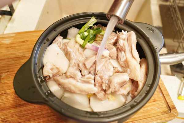 8、砂鍋裡加入適量清水,蓋上鍋蓋