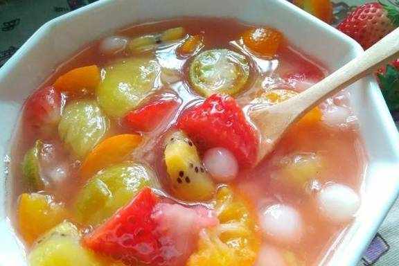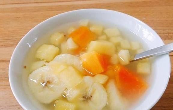 將喜歡吃的各種水果,洗凈切成丁備用,然後鍋中加入適量水,放入水果丁,先大火煮開然後轉小火熬制,待水果煮爛後加入適量白糖,最後淋入水淀粉,邊淋邊攪拌,待再次燒開後即可取出食用,用前可加入蜂蜜調味。