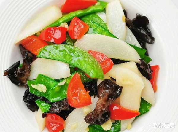 分享一款好吃不胖的經典素菜--荷蘭豆炒木耳山藥