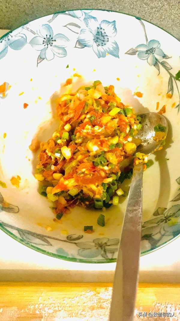 配料:生薑沫,雞蛋,肉餡,依次加入雞粉,胡椒粉,醬油,蠔油,料酒,加入肉餡攪拌上勁。(小蔥切好,但別著急加進去,一定等到包的時候再和肉餡攪拌均勻。)把握不好肉餡氣質可以先拿一小勺試著嘗嘗咸淡氣質。