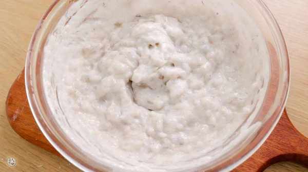 1.處理好的蝦泥加入生薑水,加入鹽、蛋清、玉米淀粉,用筷子往一個方向攪拌上勁。(Tips:蝦泥可以用鮮蝦去殼去蝦線後剁成泥,也可以買現成的蝦滑來做)
