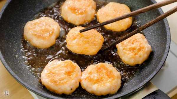 4.倒入煎好的蝦餅,中小火煮至醬汁收幹,讓蝦餅充分吸收入味。