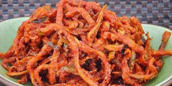 4、將大蒜切沫備用,鐵鍋燒熱放入蘿卜幹略炒幹,鍋中一定不要放油。然後盛出來,這時在鍋內放油,油要多一些。稍熱時放花椒炸香撈出不要,接著放入豆豉辣椒粉炒香,然後放蒜沫、蘿卜幹翻炒。加一點生抽,白糖調味兒,蘿卜幹因為用鹽醃過。所以這時候先嘗一下再適量加一點鹽哦。這樣一道美食就可以開吃瞭!