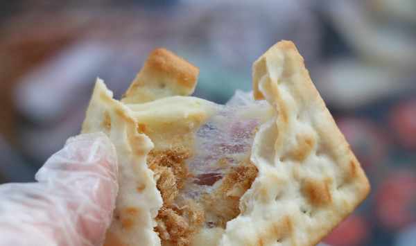 3、牛軋餅涼瞭以後夾餡不拉絲,如果想要拉絲,可以微波爐叮10秒。
