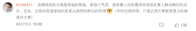“吃的不止是燒烤,而是淄博人民的熱情”。