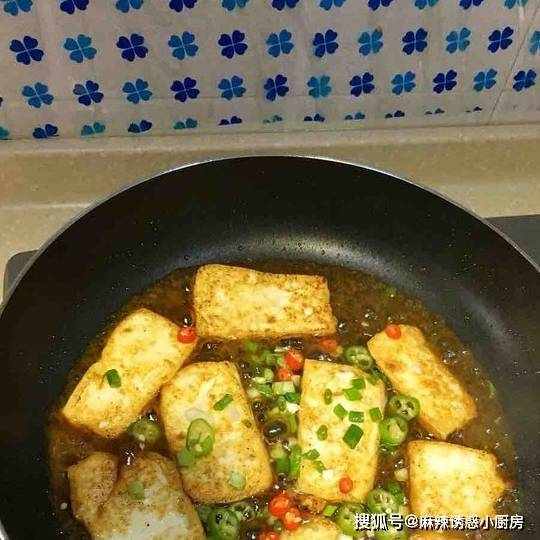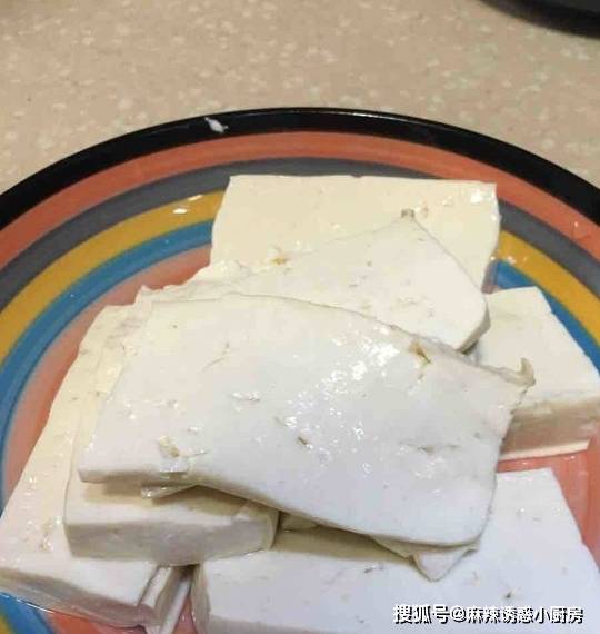1.我們喜歡吃嫩的,切塊後要晾幹豆腐水。