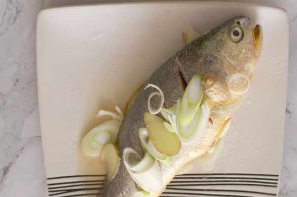 [食材]:黃花魚1條,生薑1塊,蔥白1段,鹽少量,白糖少量,料酒2勺,食用油