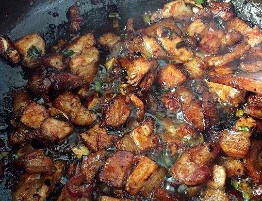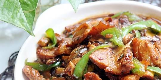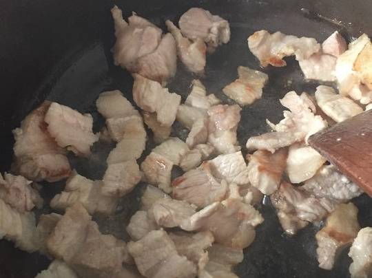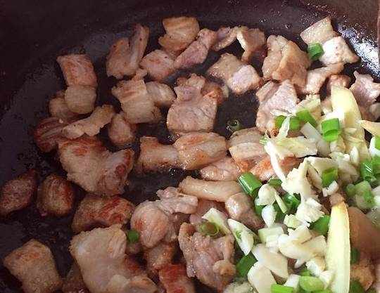 1.五花肉洗凈開水焯一下切片,香菇洗凈切片,青椒洗凈切絲,幹凈的鍋裡倒少許油,放入五花肉煸炒至出油