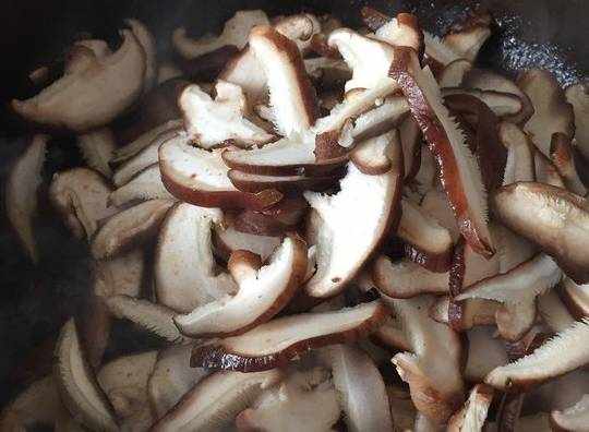 4.倒入香菇炒勻