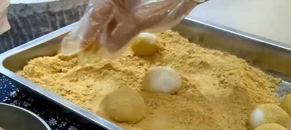 馬打滾是南昌當地的一種特色小吃,也是湯圓的一種。其同時也被稱為“元寶”,有著發財的寓意。選用熟芝麻、糯米粉、黃豆粉、白糖等制作而成。口感綿密且富有嚼勁,是南昌人春節、中秋等節日都會吃的美食。