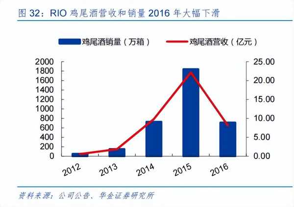 在鋪天蓋地的狂熱營銷下,2015年,RIO市占率達到65%,且銷量上的飆升也十分可觀,兩年時間內RIO產品覆蓋全國200個城市,營收實現22.13億元。