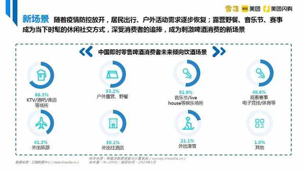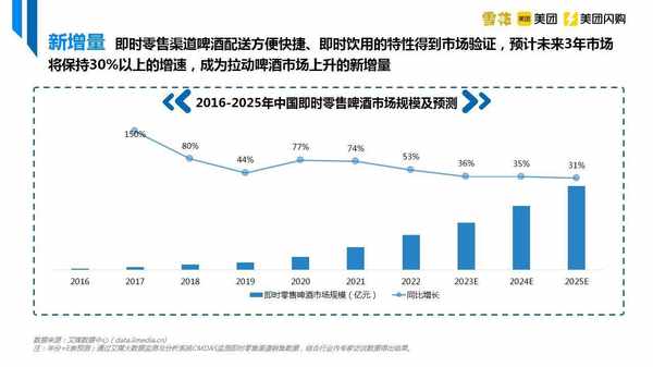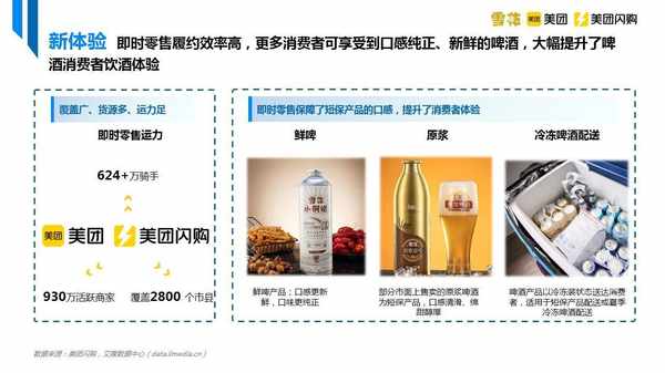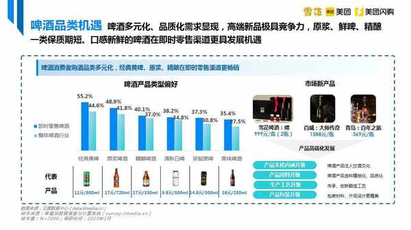 2023年4月,艾媒咨詢、雪花啤酒、美團閃購聯合發佈瞭《中國即時零售啤酒品類趨勢白皮書》,報告從新模式、新市場、新場景、新體驗、新產品、新人群、新策略、新增量角度切入,預判即時零售行業未來八大發展趨勢,為業界帶來創新發展思路及前瞻性視野。(《艾媒咨詢×雪花啤酒×美團閃購 | 中國即時零售啤酒品類趨勢白皮書》完整高清PDF版共39頁,可點擊文章底部報告下載按鈕進行報告下載)