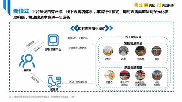 新模式:隨著即時零售啤酒的快速增長,其商業模式也在不斷豐富,即時零售渠道呈現多元化發展格局,更多類型的線下渠道融入即時零售模式當中,如平臺自有前置倉、平臺自有零售店等。