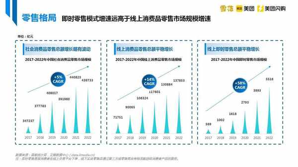 新市場:2023年中央一號文件首提“即時零售”,指出要“全面推進縣域商業體系建設,大力發展共同配送、即時零售等新模式”。在政策的推動下,這類通過即時物流等履約能力,拓展和連接實體商戶等本地零售供給,滿足消費者即時需求的新型零售模式有望在下沉市場快速推行。