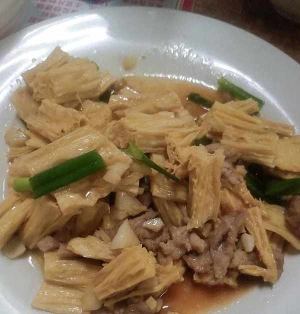 ?食材:腐竹、瘦肉、蔥薑蒜、紅椒、胡椒粉、鹽、雞精、生抽
