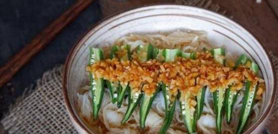 秋葵5根、魔芋絲1盒、大蒜5瓣、植物油20克、鹽5克、蒸魚豉油20克