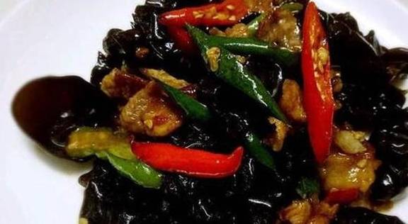 3木耳下鍋翻炒至出現劈啪聲,然後下蔥段,最後加醬油和鹽調味,出鍋前淋入水淀粉勾薄芡即可。